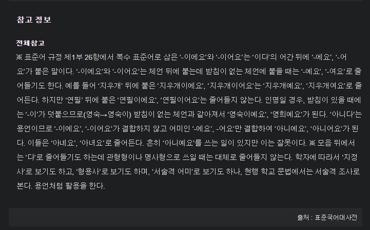 학교 (받침 없음) → 학교예요 - ‘이에요’와 ‘예요’를 섞어 쓰지 않도록 주의하세요.